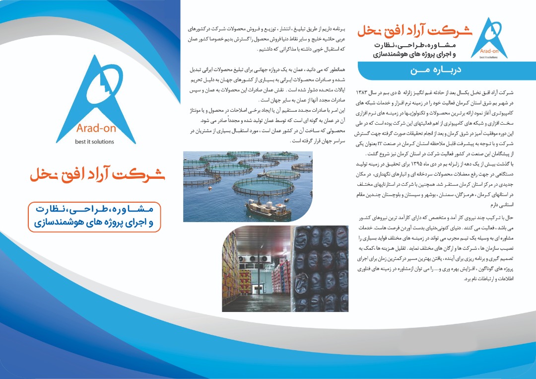 خدمات/محصولات: طراحی و تولید دستگاههای هوشمندسازی چند منظوره تجهیزات دریایی،کشاورزی،صنعتی،معدنی وپزشکی *هوشمندسازی سردخانه، گلخانه،مرغداری،ردیاب ماشین آلات و تجهیزات کشاورزی ودریایی،باغ کشاورزی،دزدگیرباغ،دزدگیرمزارع پرورش ماهی ومیگو، پهپادکشاورزی،معادن،کارخانه ها،استخرکشاورزی و شیلات،بیمارستانها